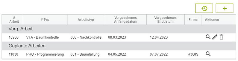 ist es nun auch möglich, eine Liste aller in der Vergangenheit ausgeführten Arbeiten am gleichen Baum/Gerät mit dem jeweiligen Ausführungsdatum anzuzeigen. Diese Funktion ermöglicht es dem Gutachter, einen Gesamtüberblick über alle vergangenen und zukünftigen Aktivitäten im Zusammenhang mit dem Objekt zu erhalten.