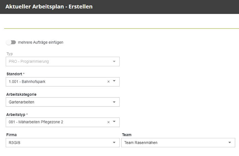 Dank dieser neuen Funktion kann jede geplante Arbeit nicht nur der Firma, sondern auch dem einzelnen Team zugeordnet werden - siehe Abbildung unten.