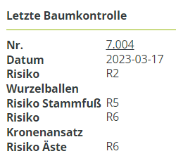 Die neue Version von GreenSpaces führt in das Baumkontrollformular die Möglichkeit ein, eine Risikobewertung nach der Areté-Methode hinzuzufügen.