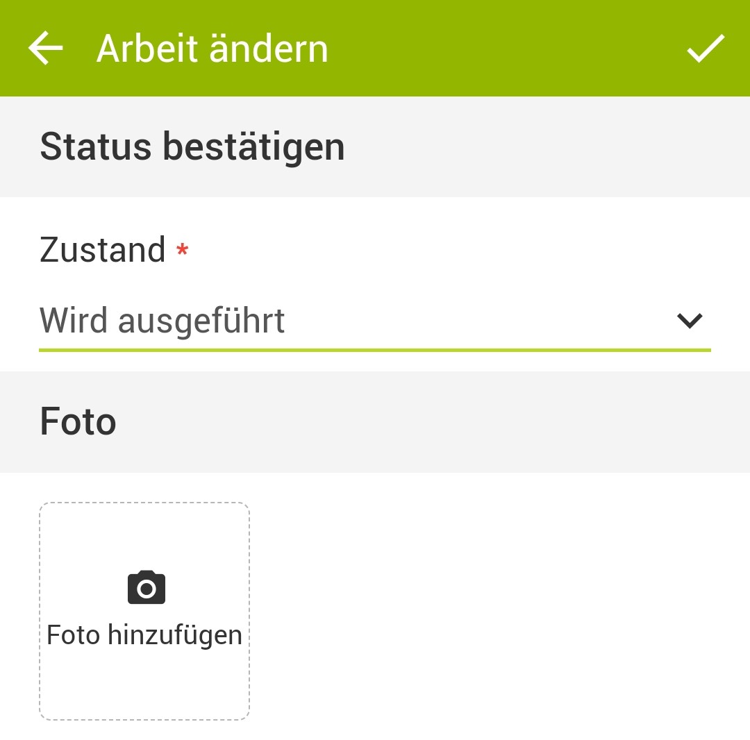 die Arbeit geht in den Status "Wird ausgeführt", wenn mindestens ein Mitarbeiter die Arbeit mit "Beginne Arbeit” gestartet hat;