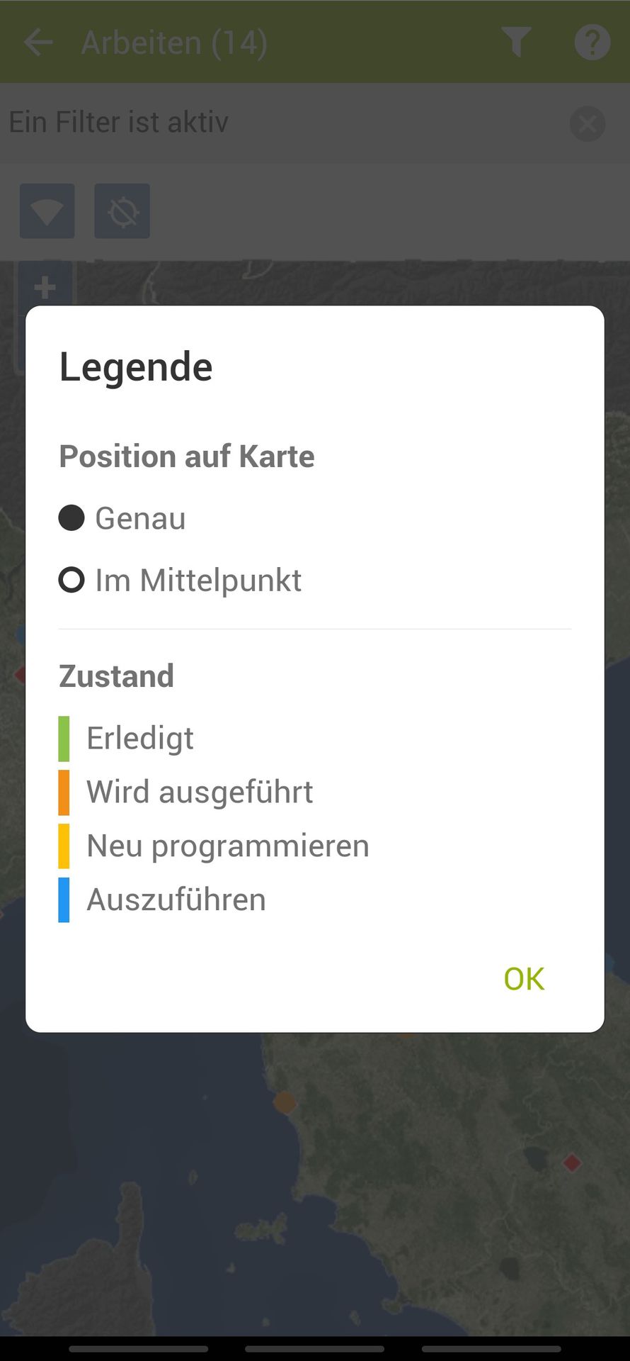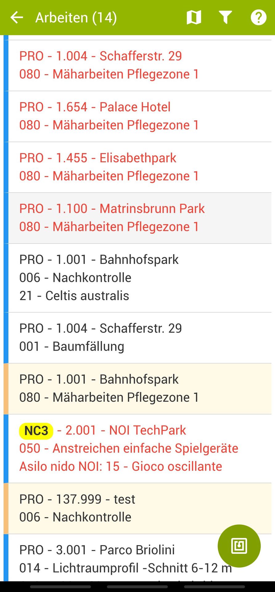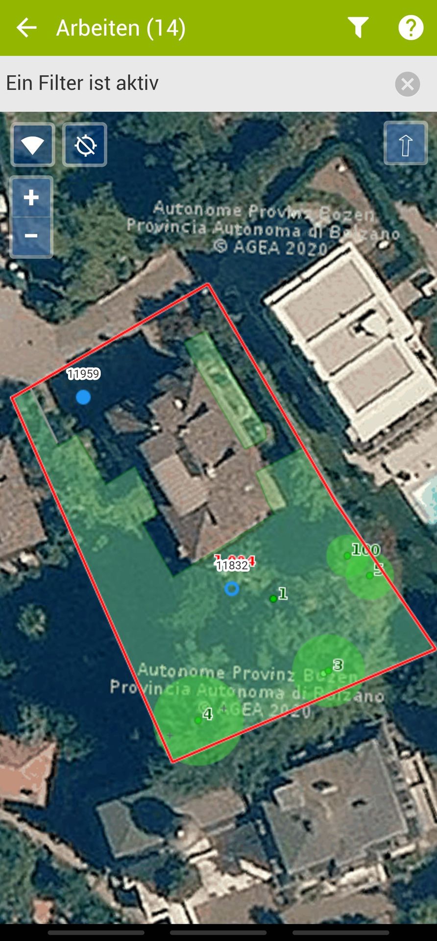 Um das Auffinden von Bäumen oder anderen Objekten, an denen Arbeiten vor Ort durchgeführt werden sollen, zu erleichtern, wurde der Kachel "Arbeiten" in GS Mobile eine Karte hinzugefügt, auf der die Position der Arbeiten angezeigt wird. Diese Funktion ähnelt der bestehenden Karte für Bäume und Baumkontrollen.