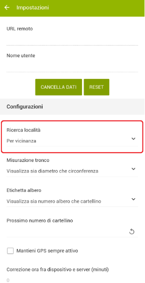 Dal menù “Impostazioni” dell’App GreenSpaces Mobile è ora possibile configurare l’ordine di visualizzazione delle località: nell’apposita sezione “Ricerca località” è possibile scegliere se visualizzare le prime località nell’elenco ordinate per vicinanza oppure in funzione del loro utilizzo.