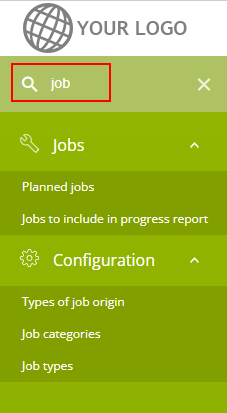 A search bar has been implemented to facilitate access to the application's functions. The bar, located to the left, above the main menus, allows the entire menu to be searched by typing even just part of the searched item. This makes it quicker to find items, especially in the longer sections of the menu, e.g. "Configurations".
